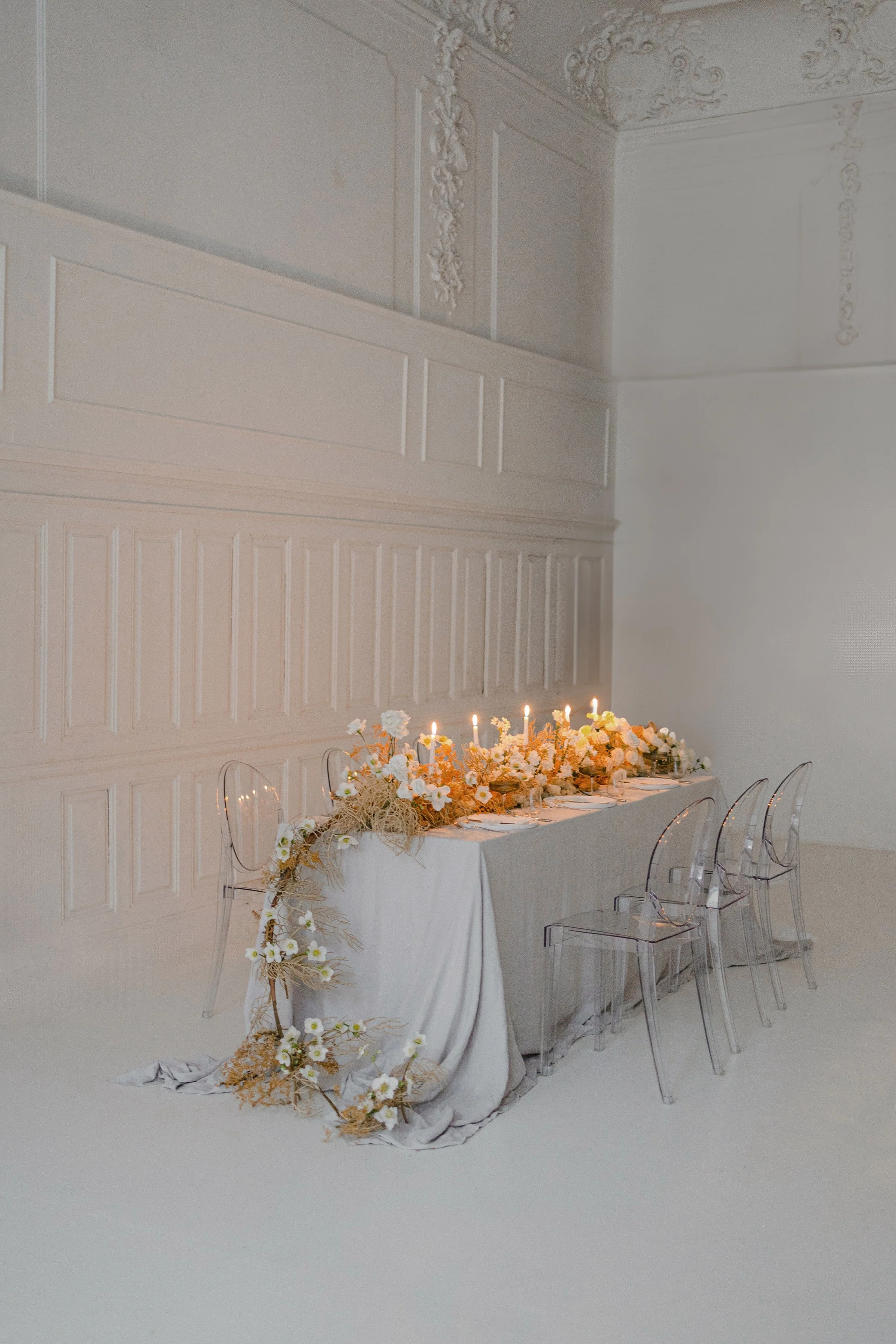 As winter bids its slow farewell, making way for the hopeful arrival of spring, I am thrilled to present an elegant and timeless spring wedding inspiration that transcends the conventional white and creamy palette. This collaboration, born from the creative synergy between fine moments, Hana Holdener's enchanting blooms, Elfenkleid's exquisite dresses from Vienna, and Carissimo Letterpress's meticulous papeterie, redefines the spring wedding narrative with a sophisticated monochrome theme.